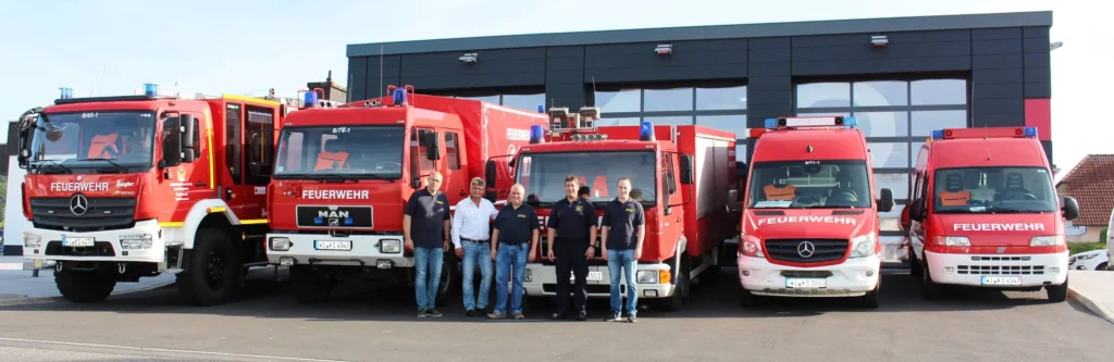 Foto: Sören Waldeck (Pressesprecher Feuerwehr Ebsdorfergrund) v.links, Bürgermeister Andreas Schulz, Gemeindebrandinspektor Wilfried Eucker, Wehrführer Alexander Hormel (Feuerwehr Wittelsberg), Lukas Schmidt FW Dreihausen