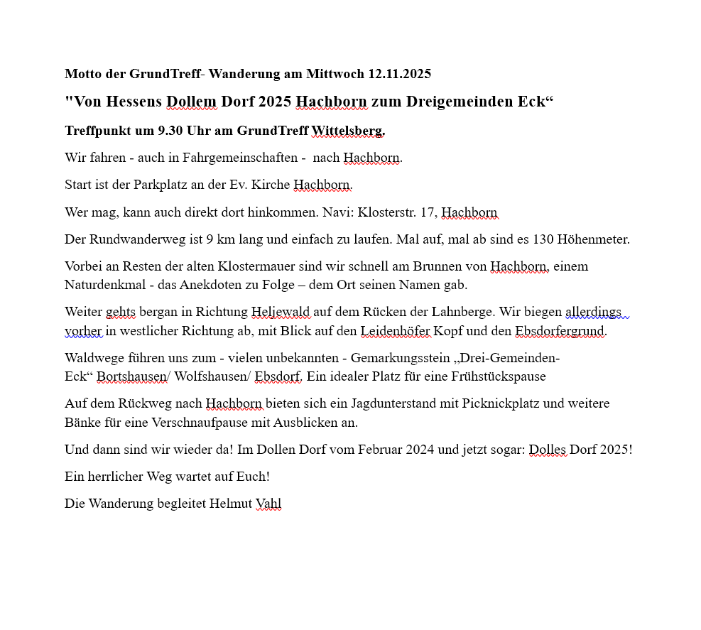 Abfahrt ab 9:00 Uhr in den Ortsteilen