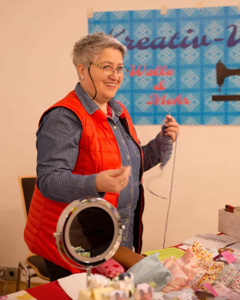 Elke Wind, Leiterin der Stricklieseln im GrundTreff, gehört zu dem Stamm-Ausstellerinnen beim Winterauskehrmarkt. Sie arbeitet auch im Organisationsteam mit.