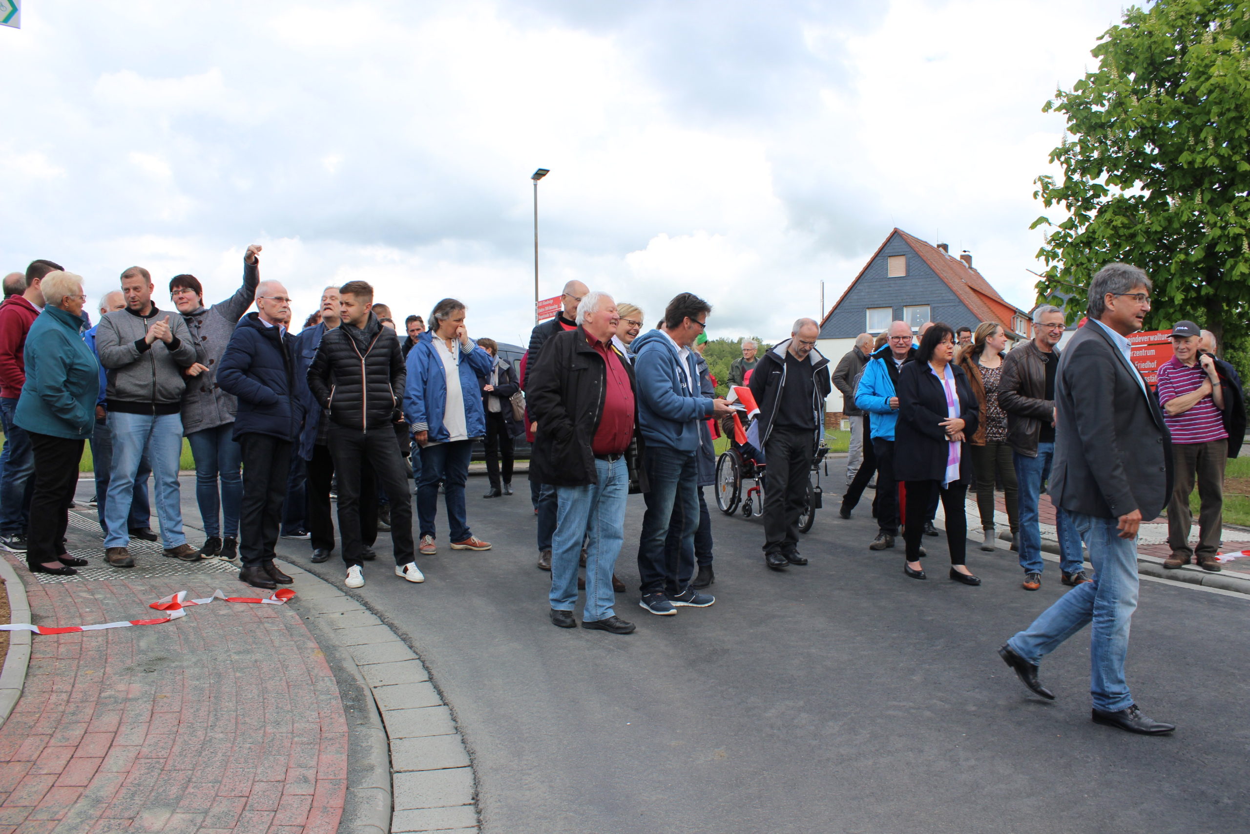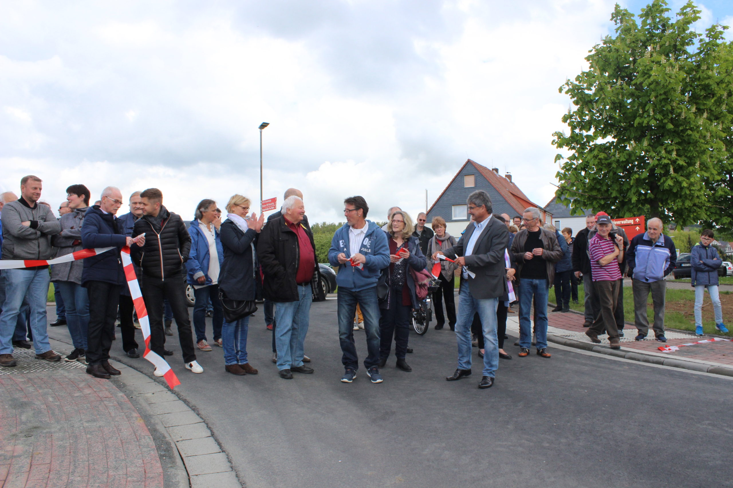 Gemeinde, Anlieger und beteiligte Firmen kamen zusammen, um die Straße feierlich zu eröffnen.
